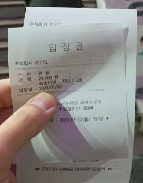 네이버에서 미리 예약하고 가시면 앙젤루스테마파크와 속초아이를 함께 이용할 수 있는 패키지권을 1,000원 할인해주는데 저희는 따로 미리 예약하고 가지는 않았어서 현장발권을 했답니다.