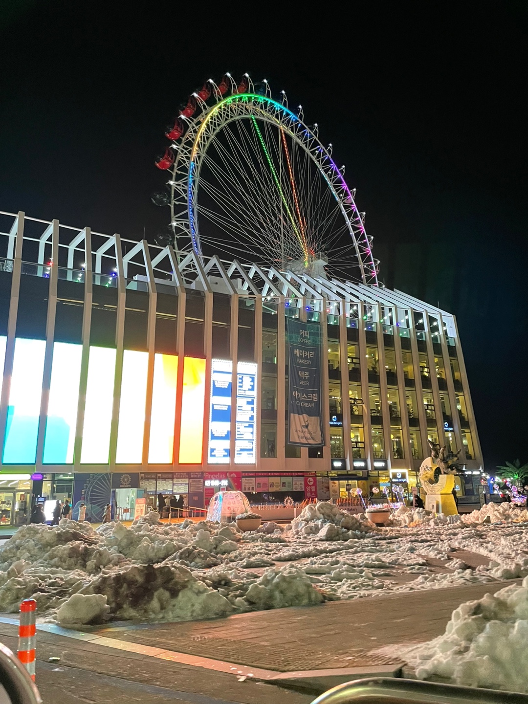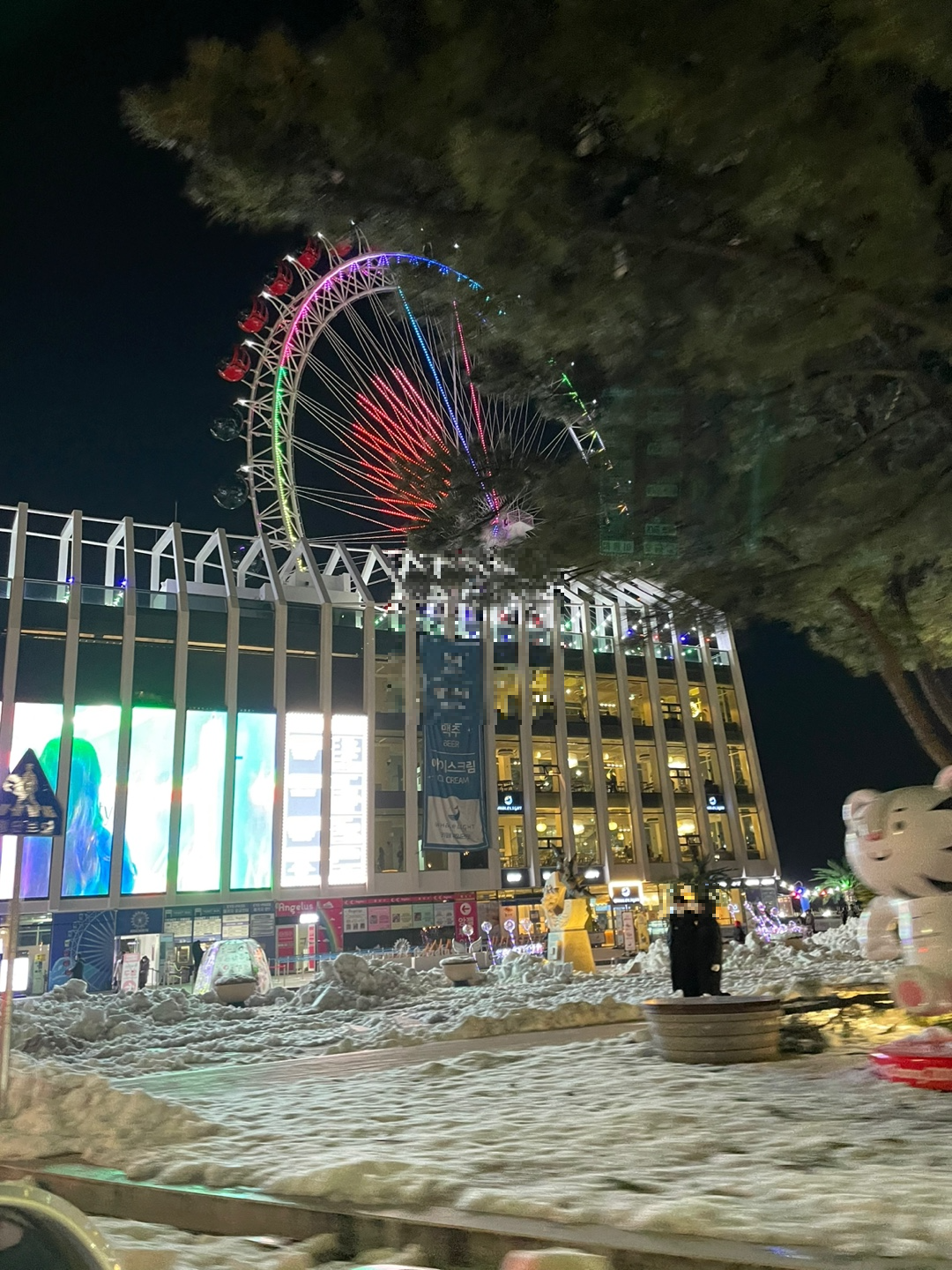 저녁에 밖에서 바라 본 속초아이 대관람차입니다.